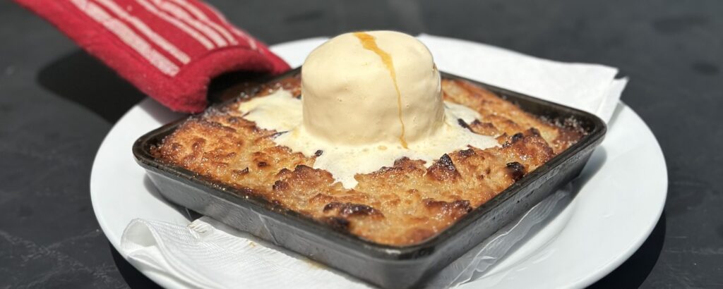 • The Grandpappy 7.95 Warm bread pudding topped with a cold scoop of ice cream and finished with a drizzle of caramel sauce.